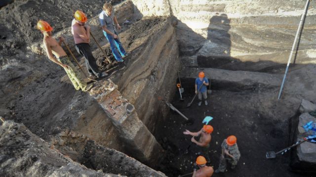 Археологи пришли к такому заключению после более подробного изучения находки. По словам ведущего инженера музея археологии ВГУ Антона Яблокова, который с первых дней находится на раскопках, найденная стена была частью фундамента подвала середины XIX века.