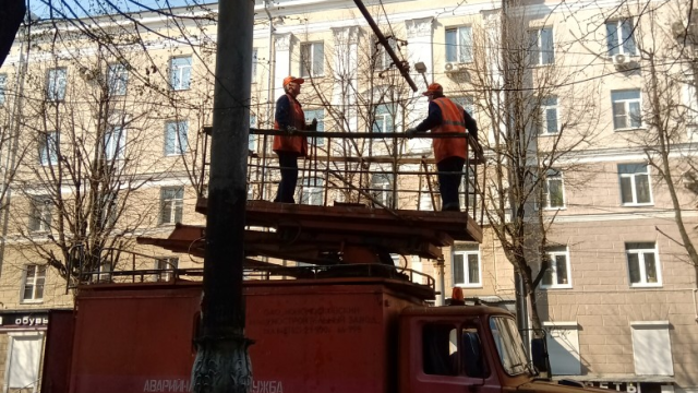 В редакцию РИА «Воронеж» прислали фотографию, на которой видно, как на улице Мира демонтируют перетяжки и кронштейны троллейбусных электролиний. Работники демонтируют неиспользуемую инфраструктуру, пояснили корреспонденту РИА «Воронеж» в администрации во вторник, 23 апреля.