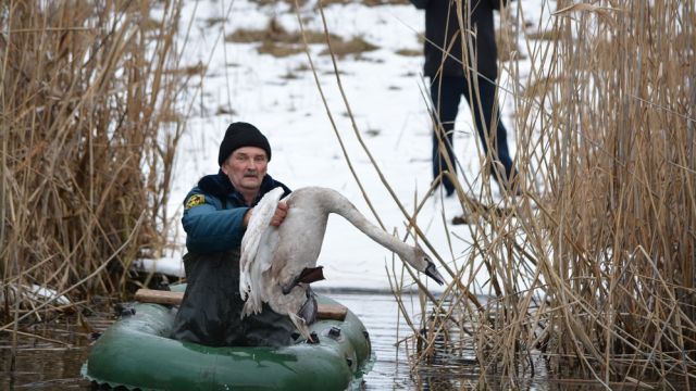 Богучарцы спасли раненого лебедя