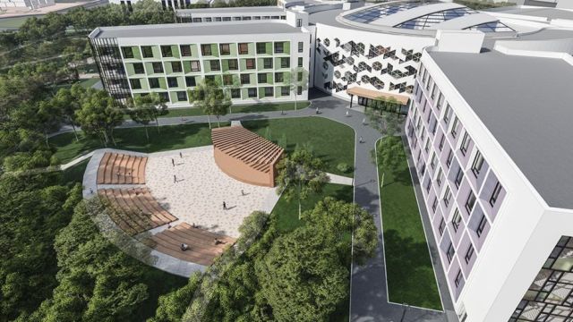В учебном заведении будут работать 220 педагогов. В образовательном центре разместят предметные и универсальные классы, кабинеты робототехники и хореографии, информационный центр с библиотекой, несколько спортивных залов. Вместо отдельных классов химии и физики в учреждении создадут большой научный блок с лабораториями. Проект также предусматривает создание большого общественно-культурного пространства в виде атриума с амфитеатром на 700 мест.