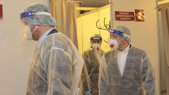 Евгений Камкин вместе с директором департамента организации медпомощи и санаторно-курортного дела Минздрава РФ Екатериной Каракулиной побывали в «красной зоне» центра первичного осмотра пациентов, который накануне был оборудован в Воронежском концертном зале.