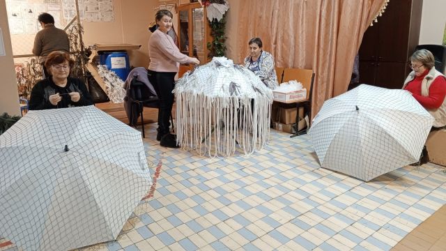 – Маскировочные зонты в зоне СВО пользуются спросом, особенно при неблагоприятных погодных условиях. Мы делаем их разными по цветовой гамме: бело-серыми или используем черные, коричневые и желтые оттенки. Зонты нам выдают в волонтерской организации, с которой мы сотрудничаем. Для изготовления маскировочного зонта нужно обтянуть корпус сетью, закрепить ее по краям, а сверху навязать ленты. Втроем можно сделать два зонта за два часа. Недавно военные сообщили, что благодаря нашим зонтам они вышли из окружения, – рассказала Надежда Фонова.
