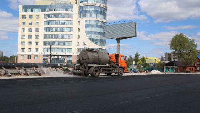 Сейчас дорожники занимаются укладкой нижнего и выравнивающего слоев асфальтобетона на объекте. Затем работники начнут наносить временную разметку.