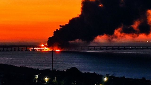 На Крымском мосту взорвали грузовик