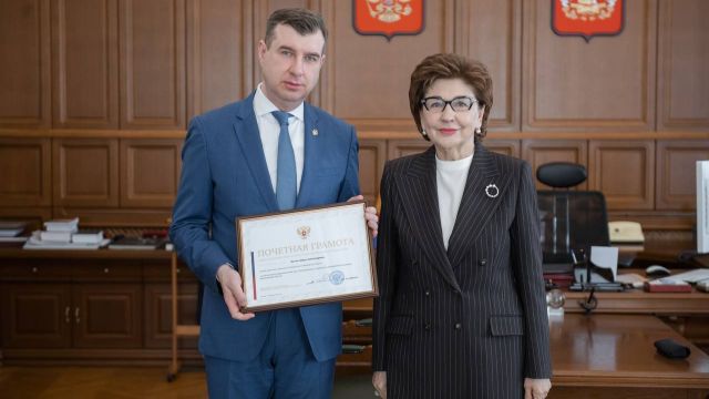 Первый заместитель председателя правительства Воронежской области Данил Кустов получил почетную грамоту за многолетний добросовестный труд, большой вклад в социально-экономическое развитие Воронежской области. Награду вручила сенатор РФ Галина Карелова от имени председателя Совета Федерации Валентины Матвиенко. Встреча прошла в четверг, 20 марта.