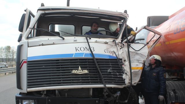 Напомним, сегодня в 10:40 бетоносмеситель на базе грузовика МАЗ выскочил на встречную полосу, где столкнулся с большегрузом «Скания», микроавтобусом «Хендай» и еще одним грузовиком. Остановился бетоносмеситель только после того, как лоб в лоб врезался в бензовоз.