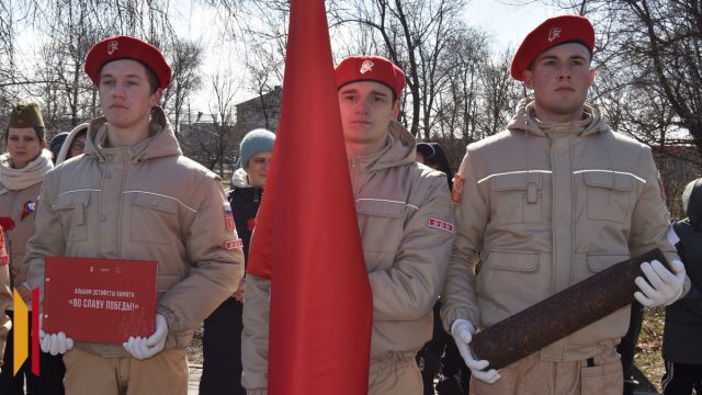 Представители сводного юнармейского отряда Борисоглебского городского округа передали знамя Победы, Книгу памяти и капсулу Победы знаменной группе юнармейского отряда «Русичи» города Поворино.