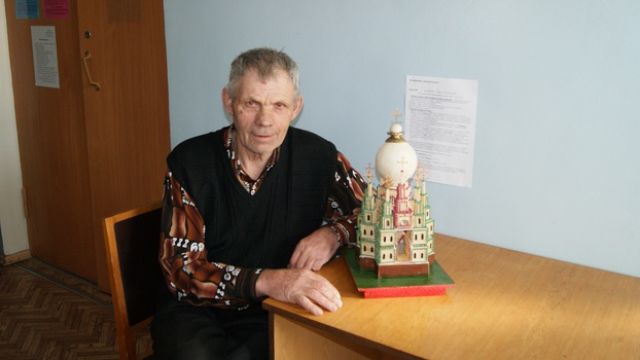 - После выписки отправился к брату в Вихляевку. Проезжая через Самодуровку, увидел церковь Рождества Пресвятой Богородицы, - говорит Владимир. - Было такое ощущение, что я ее увидел в первый раз. Вернувшись домой, сразу приступил к изготовлению макета этой церкви. Кубики сделал быстро. Стал думать, из чего смастерить купола. И тут на глаза попалась лампочка. Она и стала «куполом».