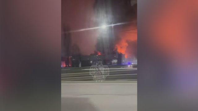 Появились новые кадры крупного пожара в автосалоне под Воронежем
