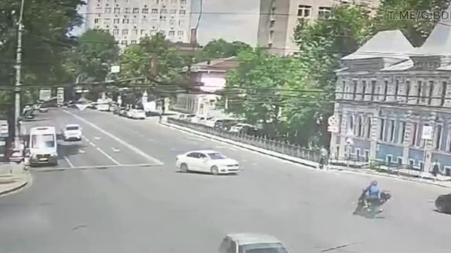 Появилось видео жуткого ДТП в центре Воронежа, в котором погиб мотоциклист
