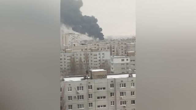 Пожар на стройке в Воронеже попал на видео
