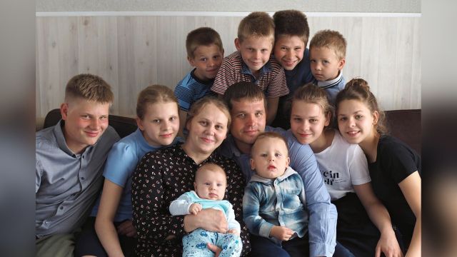 Чтобы познакомиться со всей большой семьей, просим родителей перечислить по именам всех детей, начиная с самого старшего. Паша – 15 лет, Таня – 14, Аня – 13, Лиза – 12, Даниил – 11, Руслан – 10. До этого момента родители по очереди называли детей, неожиданно папа заминается, улыбаясь, смотрит на жену, и говорит: «Пожалуйста, давай ты дальше». А дальше идут Иосиф – 7 лет, Андрей – 5 лет, Давид – 3 года и Тимофей – 2 месяца.