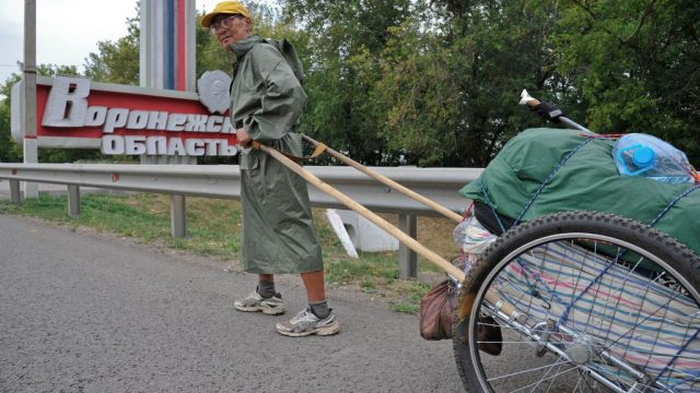 На границе региона его встретили корреспонденты РИА «Воронеж». Петр Наумов рассказал, что 15 лет назад из-за болей в спине он еле стоял на ногах, но благодаря постепенным физическим нагрузкам, особенно ходьбе и бегу, мужчина окреп, да так, что через несколько лет получил звание мастера спорта по легкой атлетике.