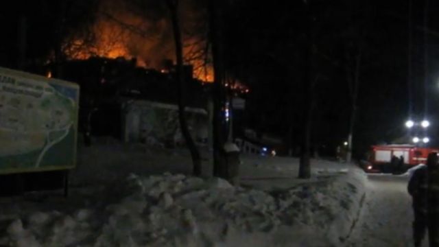На запись попали полыхающее здание корпуса и работа сотрудников МЧС.