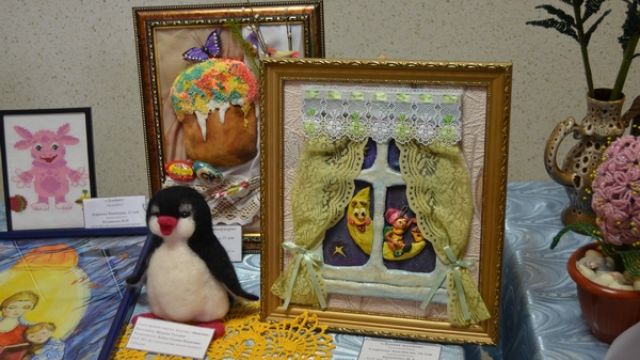 Бутурлиновская школа-интернат VIII вида показала работы воспитанников, выполненных в технике энкаустика (рисование воском при помощи горячего утюга), фелтинга (валяние из шерсти), тестопластика (лепка из соленого теста).