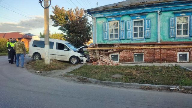 Авария произошла на улице Войкова в 16:27. Жительница Воронежа, управляя Volkswagen Caddy, съехала на обочину и врезалась в дом №28, повредив также газовую опору и автомобиль.