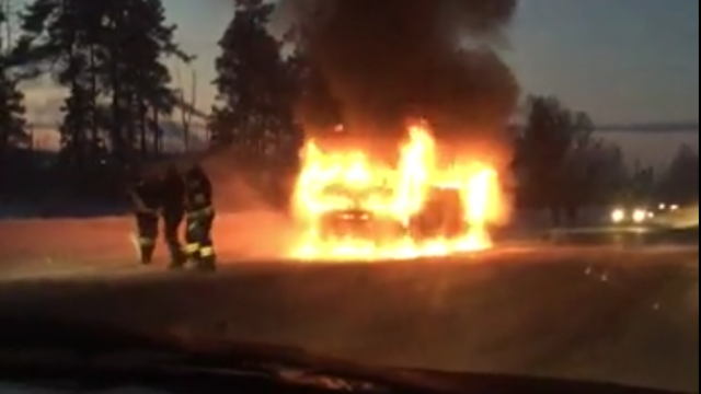 В Воронеже горящий на Левом берегу маршрутный «ПАЗ» попал на видео