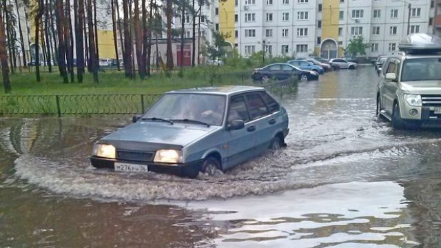 Воронежец Андрей Кривошеев запечатлел настоящий потоп неподалеку от своего дома. На фото, которое Андрей любезно предоставил РИА «Воронеж», видно, что легковые машины плывут через огромные лужи. Вода доходит до бамперов автомобилей.