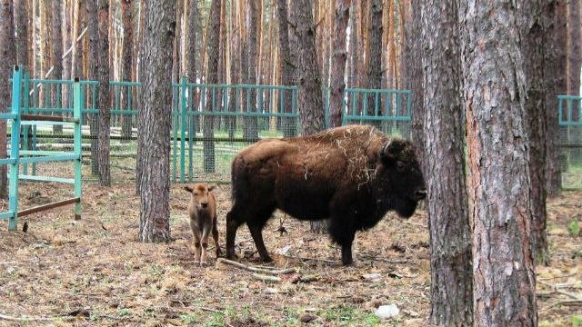 В Воронежском зоопитомнике «Червленый Яр» у пары бизонов родился детеныш