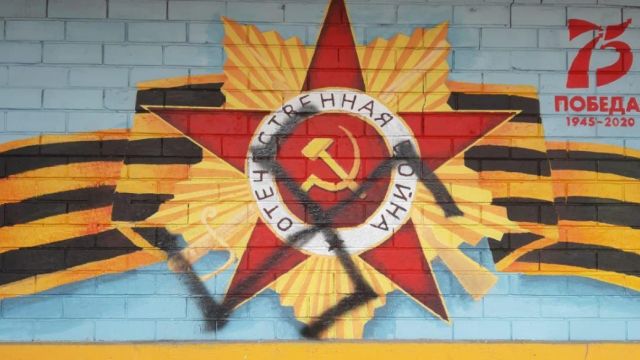Под Воронежем вандалы нарисовали свастику на памятном граффити к 9 Мая