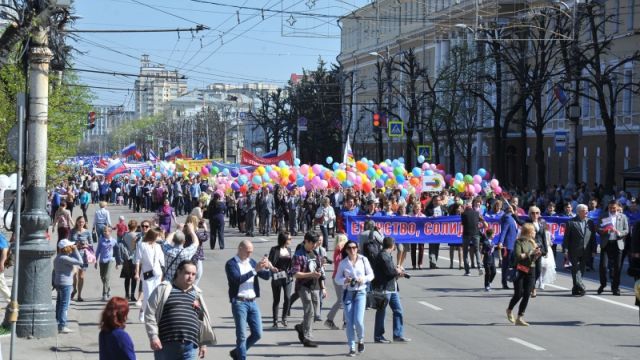 Одним из жарких дней стал вторник, 1 мая. Днем было до +26 градусов. На первомайскую демонстрацию в 2018 году вышли 30 тыс. воронежцев. В шествии, которое возглавлял Губернаторский эстрадно-духовой оркестр, участвовали представители органов исполнительной и законодательной власти Воронежа и области. Праздничная колонна прошла по проспекту Революции, шествие торжественно завершилось на Никитинской площади у магазина «Утюжок».
