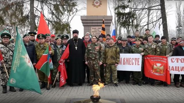 Представители общественной организации ветеранов боевых действий, общественной организации ветеранов пограничной службы, военно-патриотического клуба «Оберег» и сотрудники военкомата встретились на Аллее Славы в центральном парке Боброва. Участники вышли с плакатами «Мы вместе» и «Стоп нацизм» и записали видеообращение в четверг, 3 марта.