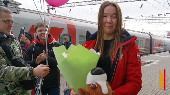 Александр Сиземин, чемпион первенства мира по гиревому спорту среди юношей 14−16 лет в весовой категории до 53 кг, был среди встречающих Викторию на вокзале.
