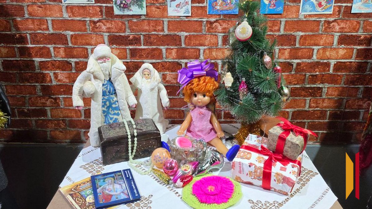 В первом зале сотрудники музея установили главный символ праздника – зеленую елку, на которую развесили игрушки из музейного фонда. Их передали в дар музею жители Богучарского района десять лет назад. Главный персонаж выставки – Дед Мороз – устроился в старинных плетеных санях. Его тоже подарили музею учителя Твердохлебовской школы.