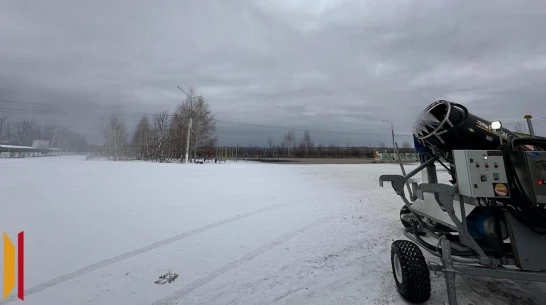 Снегогенератор для спортобъекта приобрели еще в 2020 году. Также в распоряжении сотрудников физкультурно-оздоровительного центра есть специальный трактор для равномерного распределения снежной массы и прокладывания лыжни.