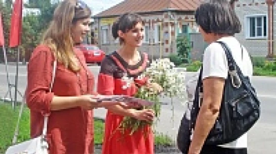 В день семьи, любви и верности в Бутурлиновке сотрудники районной библиотеки и прихожанки Спасо-Преображенского собора провели цветочный флешмоб. Они поздравляли прохожих с праздником и дарили им ромашки – символ праздника.