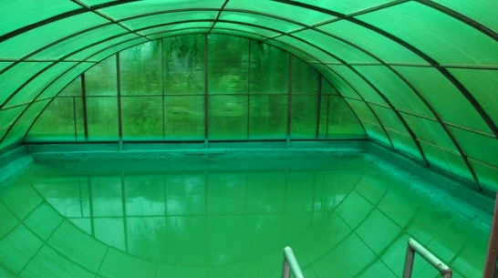Над чашей бассейна – прозрачная опрокинутая зеленая полусфера из поликарбоната. Крутая металлическая лесенка – для спуска в воду. И сама чистая, как горная река, вода, которая поступает сюда из скважины. Ее пробил и устанавливал насос сам Александр Устинов.