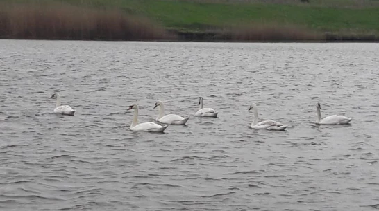 – Лебедь гнездится на мелководьях глубиной до полутора метров, опуская голову и шею под воду, фильтрует дно. Основу рациона составляют нежные вегетативные части высших водных растений и нитчатые водоросли. При неблагоприятных погодных условиях птицы кормятся на суше, щипая семена и листья злаков. В прошлом году здесь заметил около 50 особей, которые с периодичностью мигрировали и задерживались на Рогатом пруду. Были и одиночки, и пары, и стаи. Осенью птицы возвращались уже с серым молодняком, – рассказал арендатор.