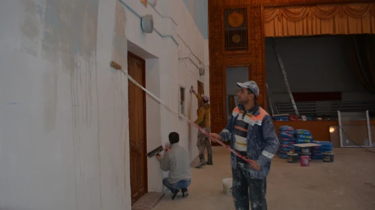 Работы ведутся с 24 сентября. В спортивном и актовом залах установили новые окна, сейчас идет внутренняя отделка. На здании главного учебного корпуса и в спортзале заменили кровлю.