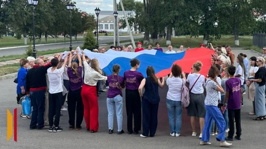 После торжественной части на площадке перед районным Домом культуры участники акции развернули десятиметровый триколор.