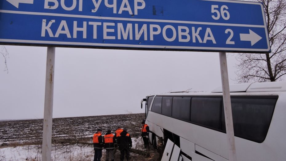 Авария с автобусом, следовавшим из украинского Артемовска в Краснодар, случилась в 23:30 воскресенья, 17 января. В автобусе, водитель которого не справился с управлением, находились 33 человека, из них 12 пострадали. Проезжающие водители пообещали довезти пострадавших без серьезных травм в Краснодар бесплатно. Один пассажир уехал в Кантемировку на вокзал, и одна пассажирка села на попутную машину. Остальные сели ночью в проходящий пустой автобус, который шел в Северную Осетию. По данным ГУ МВД по Воронежской области, врачи оставили на лечение в больнице 10-летнего мальчика и 16-летнюю девочку. Большинство пострадавших получило незначительные травмы, этих людей отпустили из медучреждения. Помимо двух школьников, в больнице ночью оставили 44-летнего мужчину и 51-летнюю женщину. К утру их выписали.