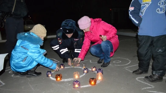 В Кантемировке прошел областной флеш-моб, посвященный памяти погибших в ДТП «Уходят, не прощаясь». В воскресенье, 16 ноября, сотрудники Госавтоинспекции совместно с юными инспекторами дорожного движения зажгли поминальные свечи и запустили шесть небесных фонариков, по числу погибших в авариях в этом году.