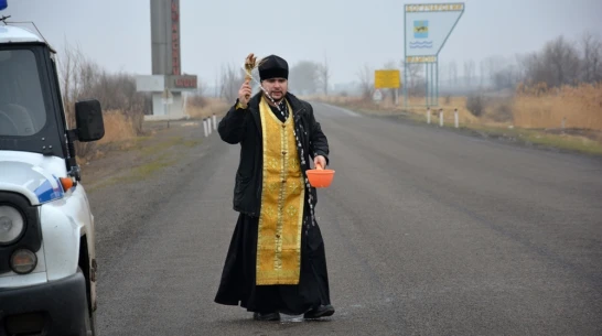 Самые аварийные, согласно статистике ГИБДД, участки дороги освятил иеромонах Никодим Кутепов.