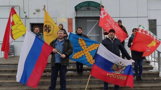 Культработники вышли на улицы села с флагами России, Воронежской области, Хохольского района.