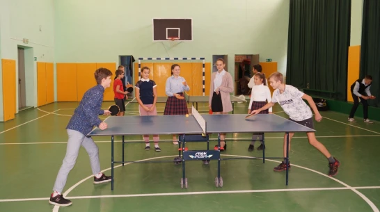 В секцию настольного тенниса записались 25 учеников шестых-восьмых классов. Тренировки проводит Олег Будников.