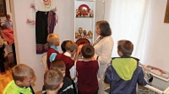 В отдельном зале разместили выставку русских народных костюмов – сохранившихся и воссозданных. С настоящими кофтами и поневами соседствовали их миниатюрные копии – в старинных нарядах щеголяли яркие матрешки. Их автор и создатель Елена Матвеева рассказывала ребятам, как появилось в декоративно-прикладном творчестве отдельное направление «Воронежская матрешка» и чем наши расписные куклы отличаются от других.