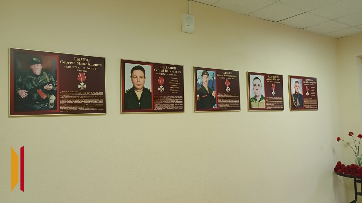 На памятных стендах портреты Сергея Бухтоярова, Сергея Грибанова, Андрея Разгоняева, Вадима Сорокина, Сергея Сычева, автобиографические сведения о них и данные о подвигах. За проявленные отвагу и самоотверженность все они были награждены орденом Мужества посмертно.