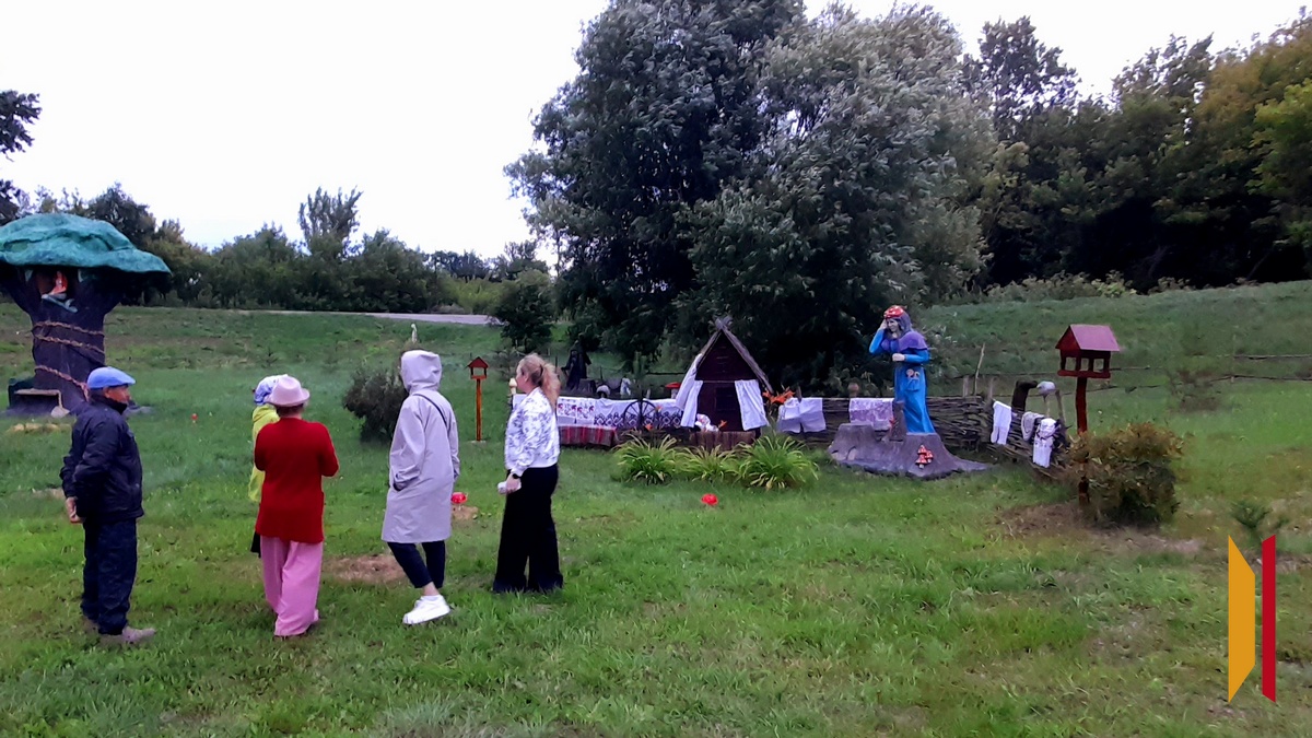 Следующей точкой маршрута стала зона отдыха у воды. Гости осмотрели волейбольную площадку, беседки и фигуры сказочных персонажей.