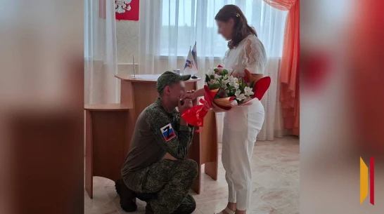 В отделе ЗАГС Нижнедевицкого района во вторник, 3 июня, участник специальной военной операции Владислав официально стал мужем своей возлюбленной Оксаны. Предложение он ей сделал через месяц после знакомства, а женился спустя год. При этом к регистрации брака молодые подготовились всего за сутки. На церемонии присутствовала корреспондент РИА «Воронеж».