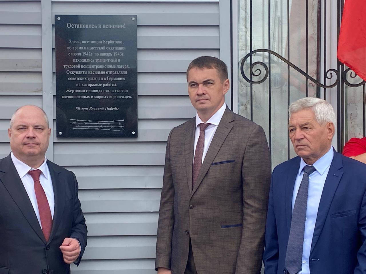 В поселке Курбатово Нижнедевицкого района Воронежской области состоялось торжественное открытие памятного знака в честь погибших узников концлагерей, которые располагались в поселке в годы Великой Отечественной войны. Кроме того, на здании железнодорожной станции, откуда отправляли местных жителей в другие концлагеря, открыли мемориальную доску. Митинг прошел в среду, 2 июля.