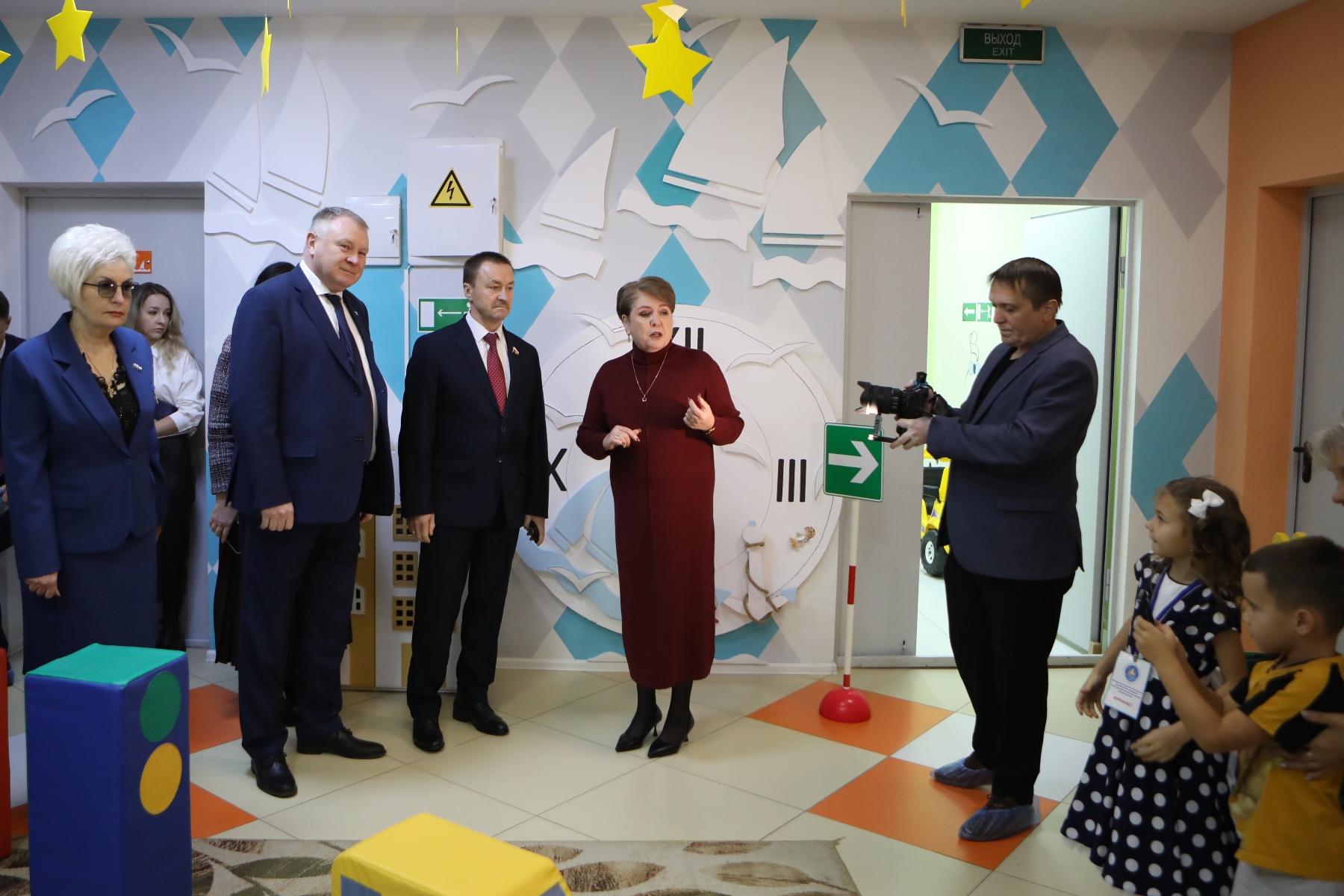 Затем Юрий Матузов посетил ряд социальных учреждений района. Центр развития ребенка «Пристань детства» – это флагманское дошкольное образовательное учреждение района. Он открылся в 2016 году и рассчитан на одновременное размещение 280 ребят в возрасте от 1 года до 7 лет, в том числе детей с ограниченными возможностями здоровья.