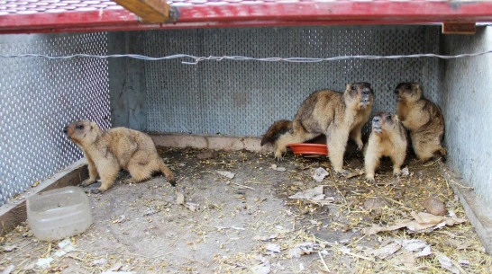 Мужчина охотился в окрестностях села в апреле. Детенышей сурков-байбаков он увидел на одном из островков на затопленном лугу. Алексей посадил животных в мешок и отвез домой. Во дворе он сделал для них клетку.