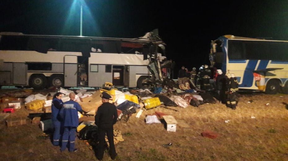 По данным пресс-службы регионального ГУ МВД, ДТП случилось на 525 км федеральной трассы в 20:20. Известно, что одно транспортное средство было из Карачаево-Черкессии, а второе – из Ставропольского края. Как пояснил источник РИА «Воронеж», автобус Neoplan протаранил автобус Volvo, который остановился на обочине из-за поломки. По состоянию на 23:00, в ДТП погибли четыре человека, 18 пострадали. Среди погибших – второй водитель из автобуса, въехавшего в припаркованный на обочине транспорт.