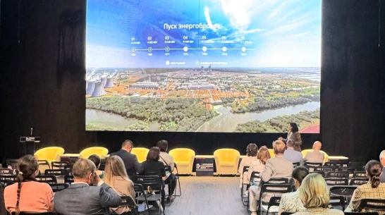 На главной сцене Воронежского концертного зала в режиме реального времени участники форума с участием министра промышленности и транспорта региона Сергея Хлызова совершили виртуальный тур по НВ АЭС – первой в мире АЭС с энергоблоком поколения «3+».