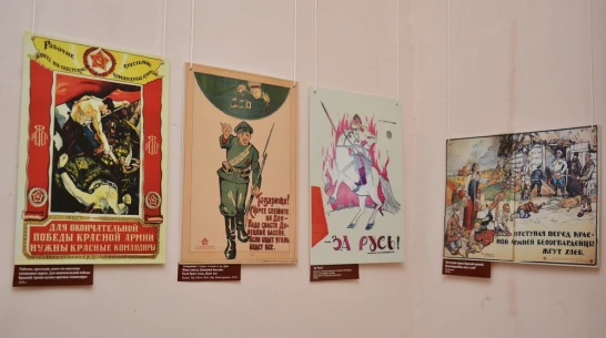 На выставке представлено более 20 плакатов, посвященных теме Гражданской войны. Все экспонаты привезены из Воронежского областного музея имени И. Н. Крамского.