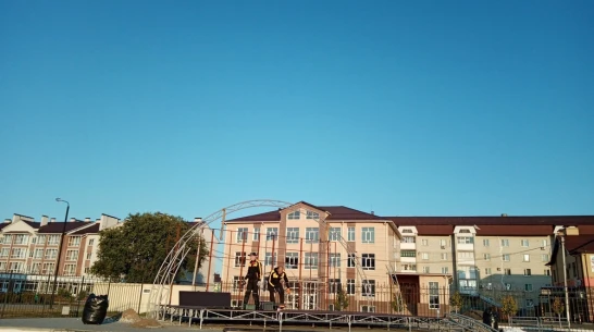 Навес будет использоваться круглогодично. Подрядчики уже приступили к монтажу. Сверху подиума дополнительно установили настил, что позволило приподнять сцену на 50 см. Каркас навеса представляет собой сборно-разборную конструкцию из взаимозаменяемых элементов высотой 5,5 м, длиной 6,8 м и шириной 11 м. Удобный подъем и спуск с площадки для выступлений обеспечат две лестницы.
